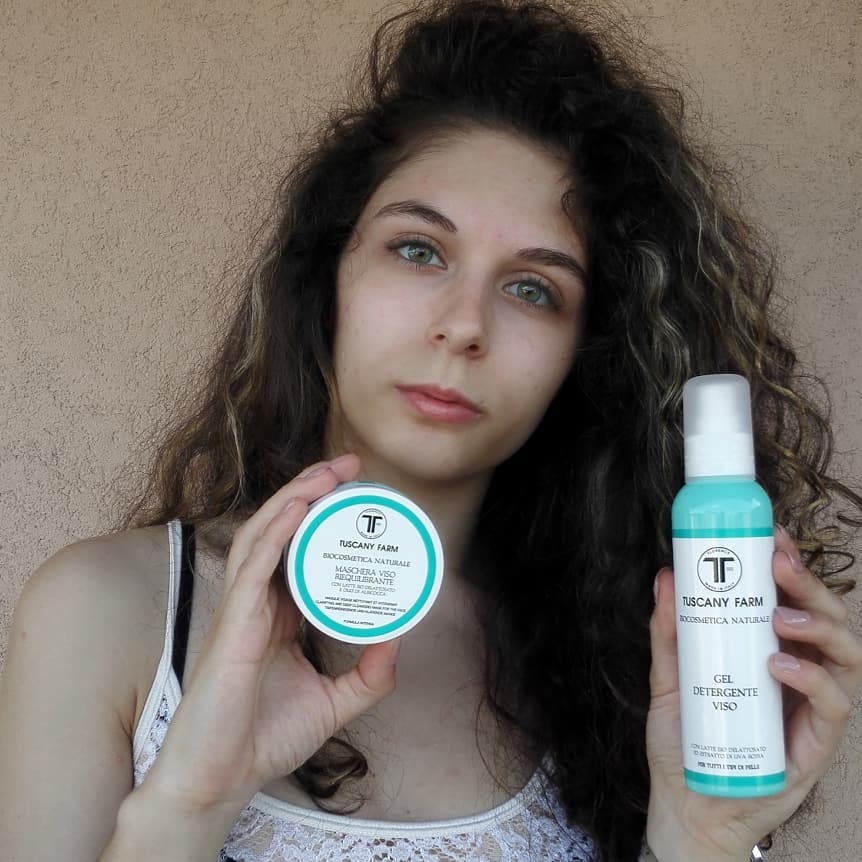 - STEP 1 ho lavato il viso con il gel detergente della TUSCANY FARM a base di latte bio delattosato ed estratto di uva rossa, ideale per tutti i tipi di pelle, biologico e naturale, no parabeni, no petrolati, no sls, no coloranti, no animal testing). Ideale per rimuovere le impurità e donare alla pelle la propria luminosità. Metodo di utilizzo: Inumidire il viso, dosare una piccola quantità di prodotto sulle mani e applicare direttamente sul viso facendo emulsionare il prodotto con leggeri massaggi circolari. Rimuovere con abbondante risciacquo con acqua tiepida.